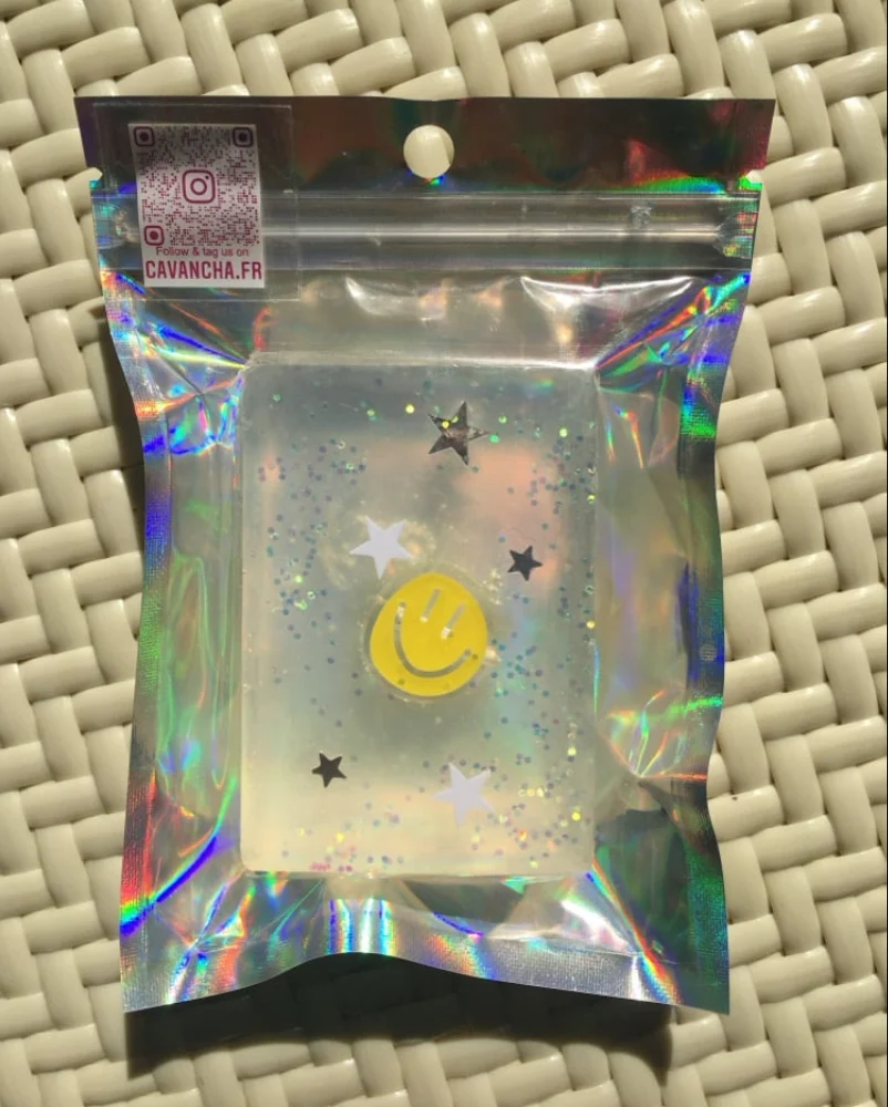 Aqua, Glycérin ( émollient d’origine végétale, colza ), Sodium cocoate ( huile de coco saponifiée ), Sorbitol ( sucre, hydratant ), Sodium stearate ( sel saponifié d’acide stéarique d’origine végétale, colza ), Butylène glycol (émollient et hydratant d’origine végétale, maïs ), Cocamidopropyl betaine ( tensioactif d’origine végétale, coco ), Sodium chloride ( sel ), Sodium citrate ( sel d’acide citrique ), Cocos nucifera oil ( huile végétale de coco ), polyglyceryl-4-oleate ( émulsifiant d’origine végétale, colza, olive ), citric acid ( acidifiant ), geraniol, linalol, jouet vintage et paillettes biodégradables ( JUST FOR FUN ! ) issues de plantes.