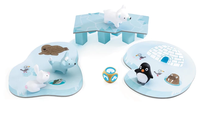C’est ensemble que les joueurs tentent de faire traverser les animaux sur le pont. Mais attention, si le dé indique un «glaçon», le pont se met à bouger dangereusement. Un jeu tactique qui encourage la communication entre les enfants et les parents.