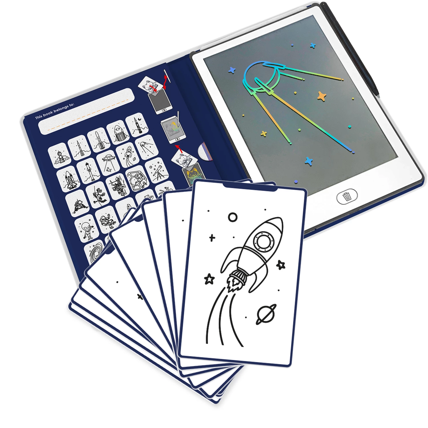 « Expérience de dessin sans limites avec le tableau design lumineux! Le compagnon parfait pour les jeunes artistes en herbe, favorisant la créativité, le développement et l’apprentissage autonome. L’écran à cristaux liquides (LCD) de 8,2″ » permet de reproduire l’une des 30 illustrations fournies à l’aide du stylet intégré. Avec un simple bouton, le dessin peut être effacé et recommencé. Grâce à son design compact et léger, le tableau se glisse dans tous les sacs. Un élastique maintient toutes les pièces en sécurité. »