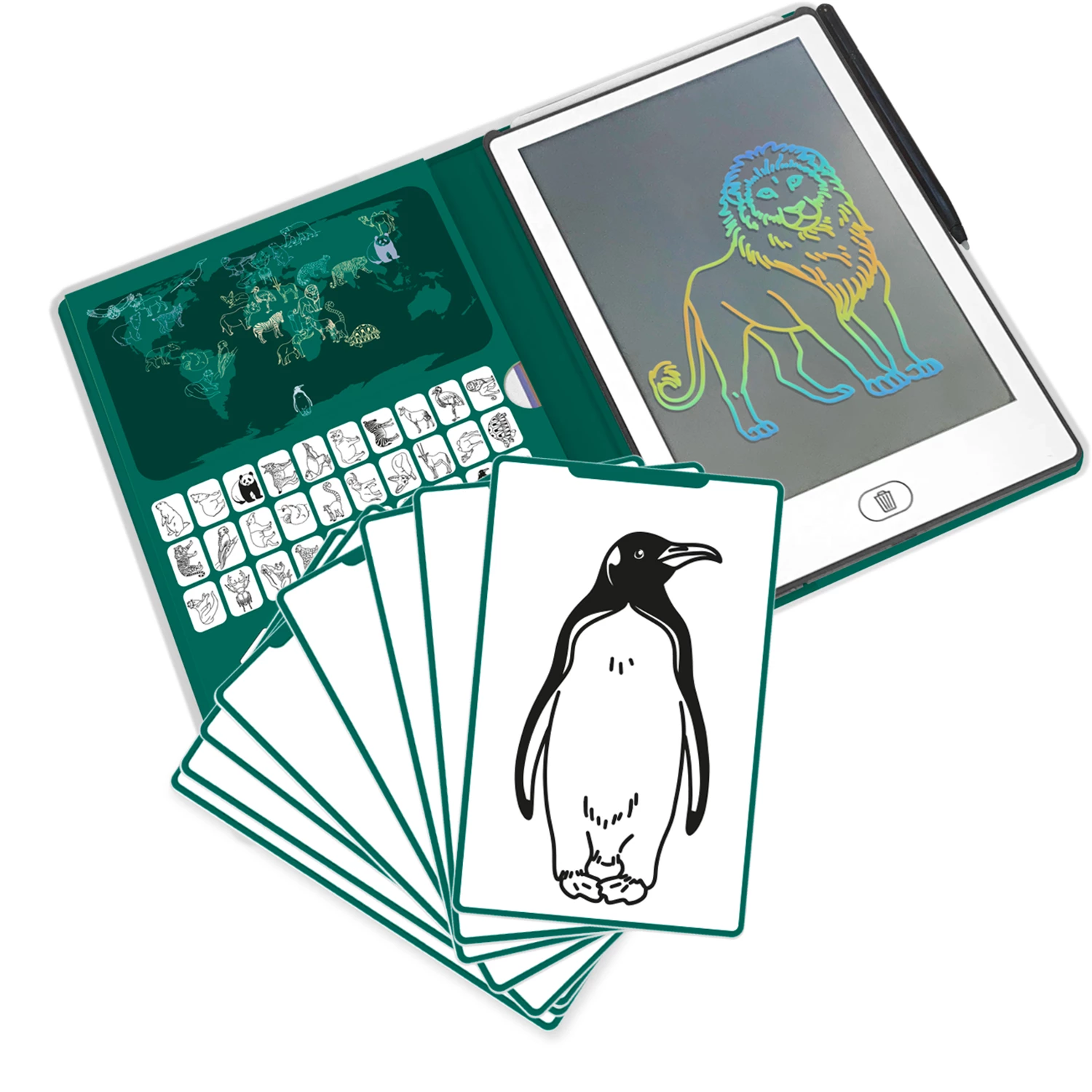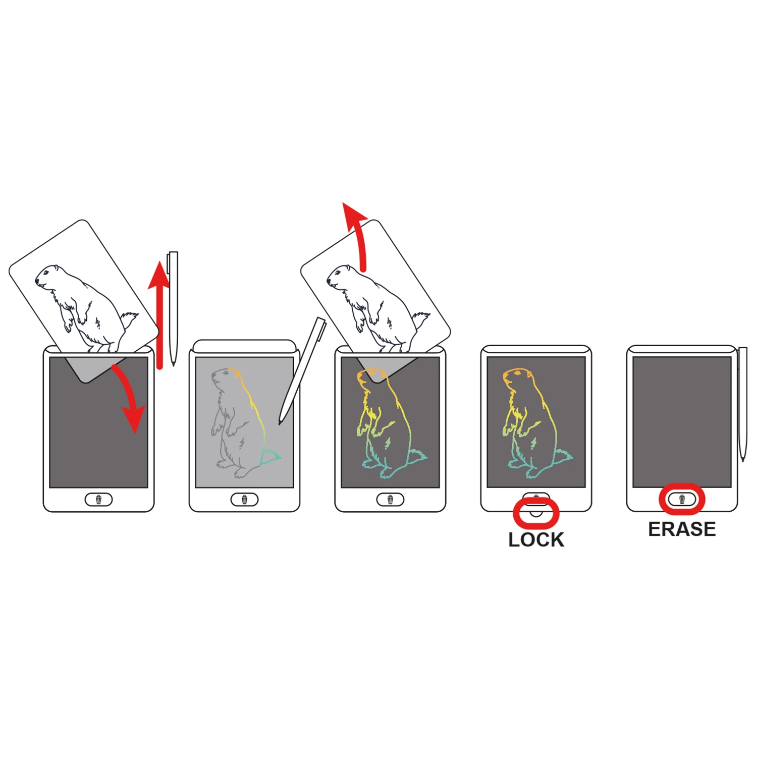 « Expérience de dessin sans limites avec le tableau design lumineux! Le compagnon parfait pour les jeunes artistes en herbe, favorisant la créativité, le développement et l’apprentissage autonome. L’écran à cristaux liquides (LCD) de 8,2″ » permet de reproduire l’une des 30 illustrations fournies à l’aide du stylet intégré. Avec un simple bouton, le dessin peut être effacé et recommencé. Grâce à son design compact et léger, le tableau se glisse dans tous les sacs. Un élastique maintient toutes les pièces en sécurité. »