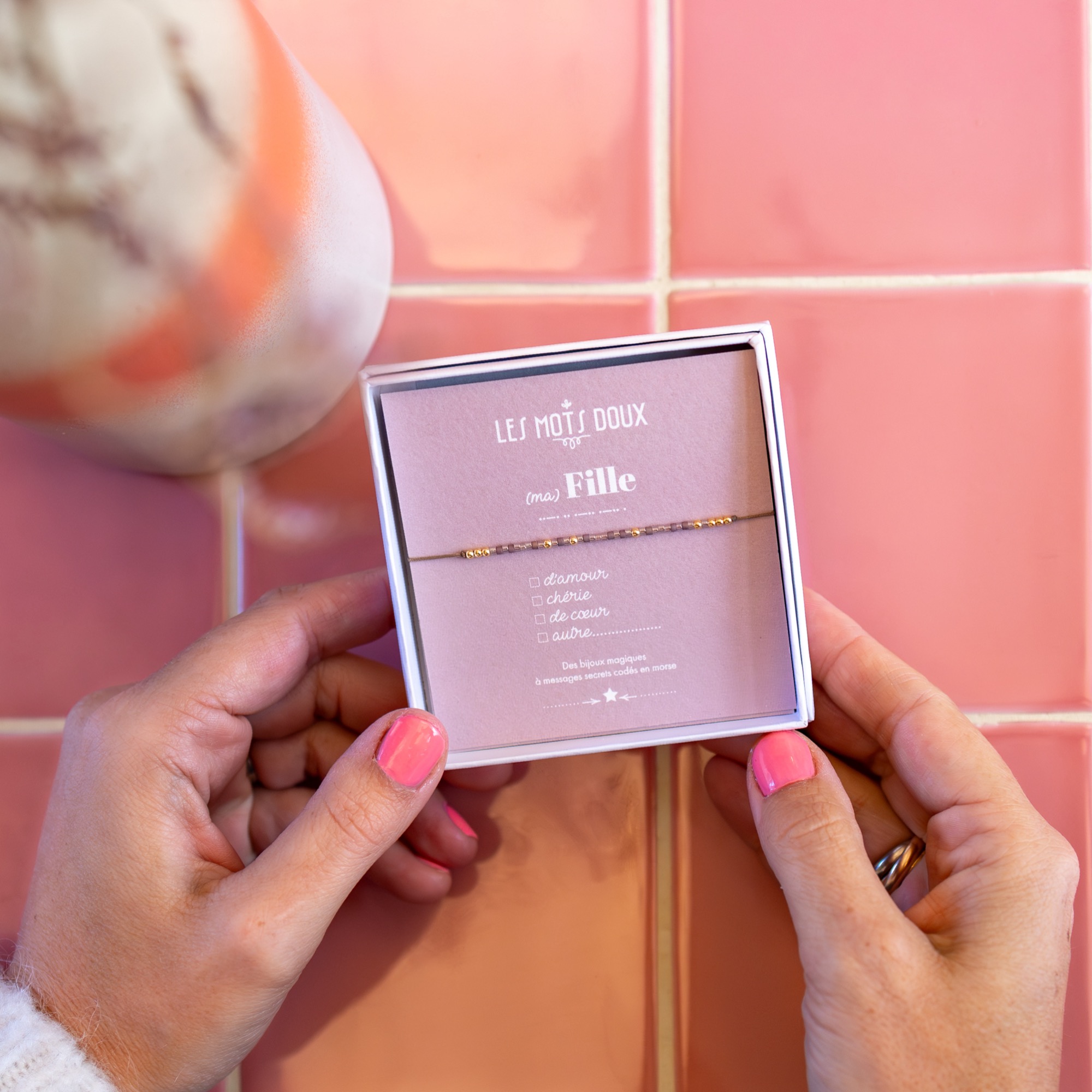 Les perles reprennent le code de l’alphabet morse pour traduire un message secret dont vous seule connaissez la signification.