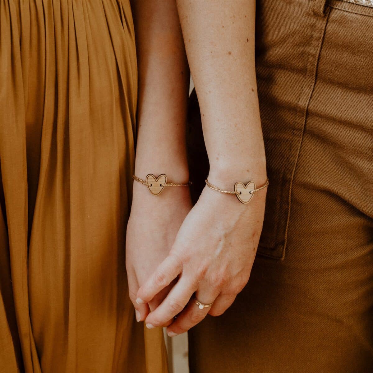 Les Petites Hirondelles – Bracelet doré en bois taille S – Coeur