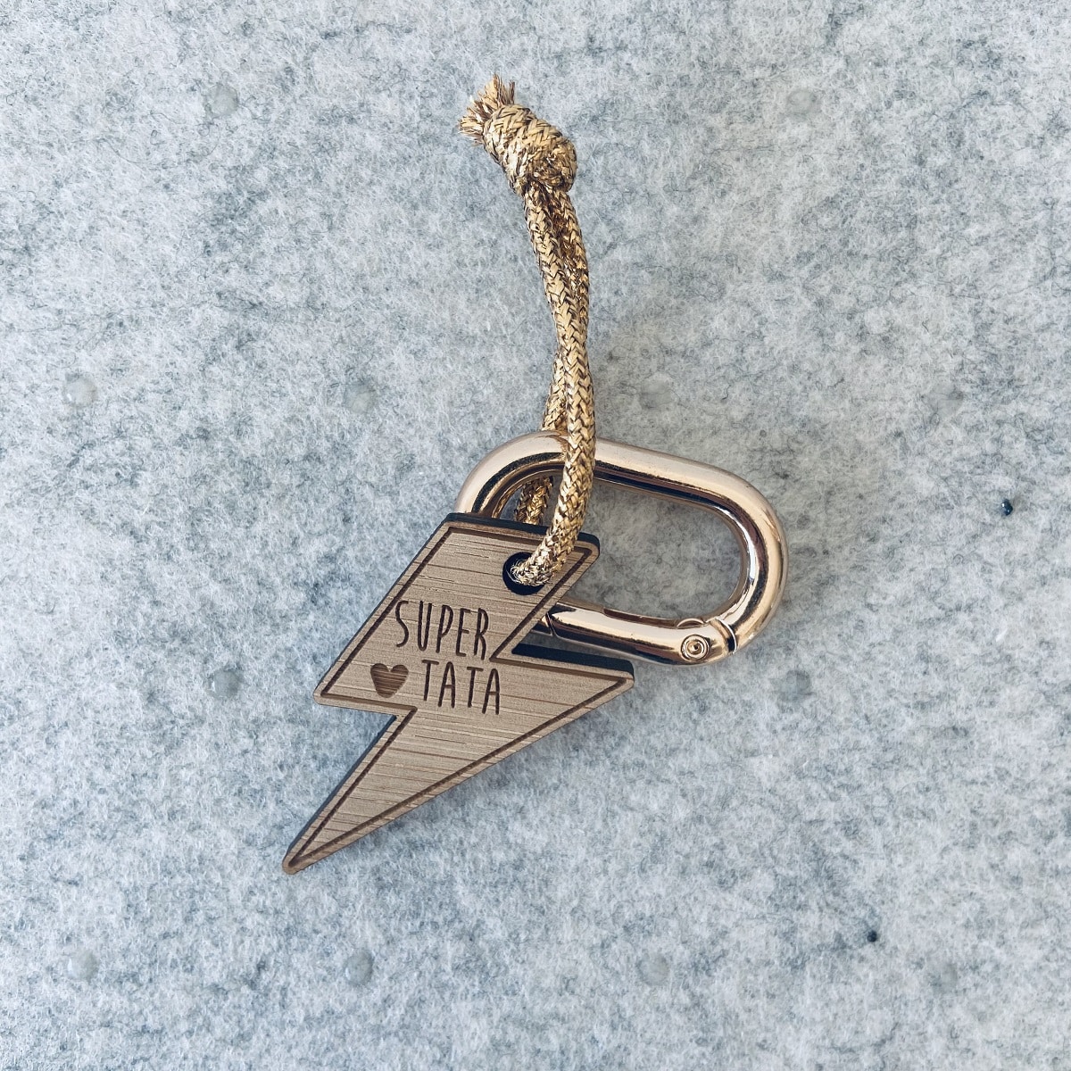 Les Petites Hirondelles – Porte clé éclair doré – »Super tata »