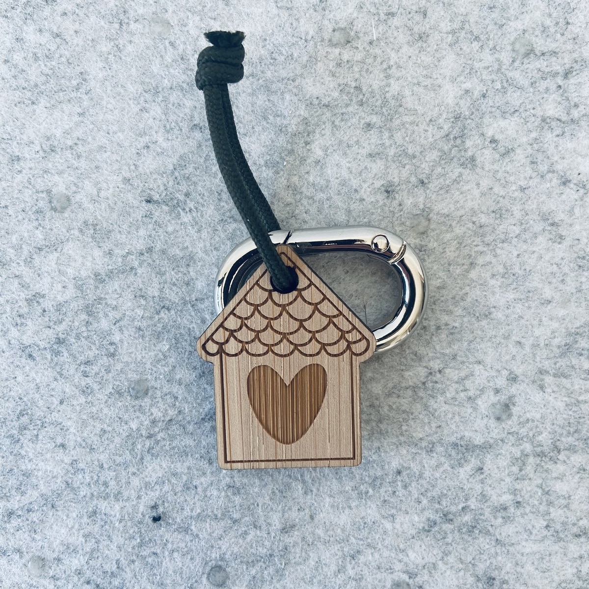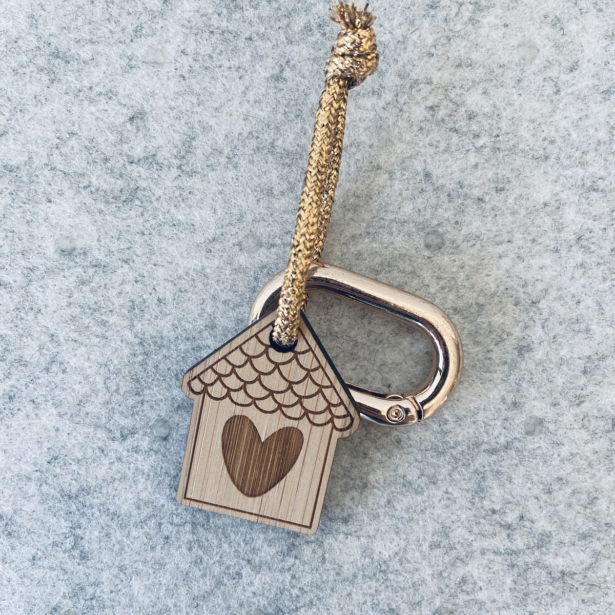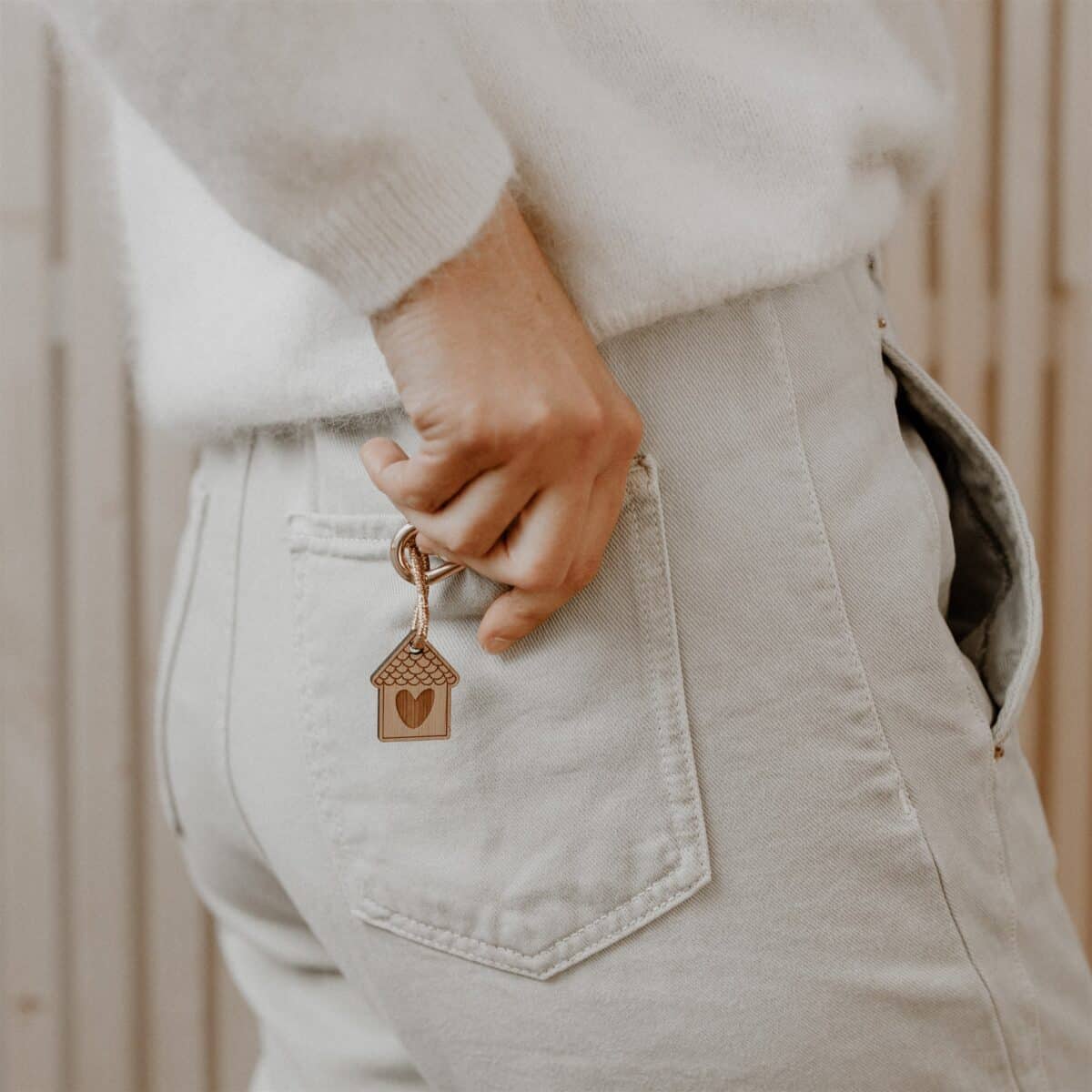 Notre porte-clés en bois est composé d’un petit motif en bois gravé avec de beaux détails, d’environ 3-4 cm et d’un mousqueton en métal, très pratique pour y glisser vos clés, le tout relié avec une cordelette.