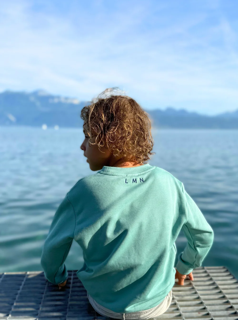 Logo brodé sur la poitrine, “Feel the lake vibe” brodé sur la manche droite et LMN brodé dans la nuque.
