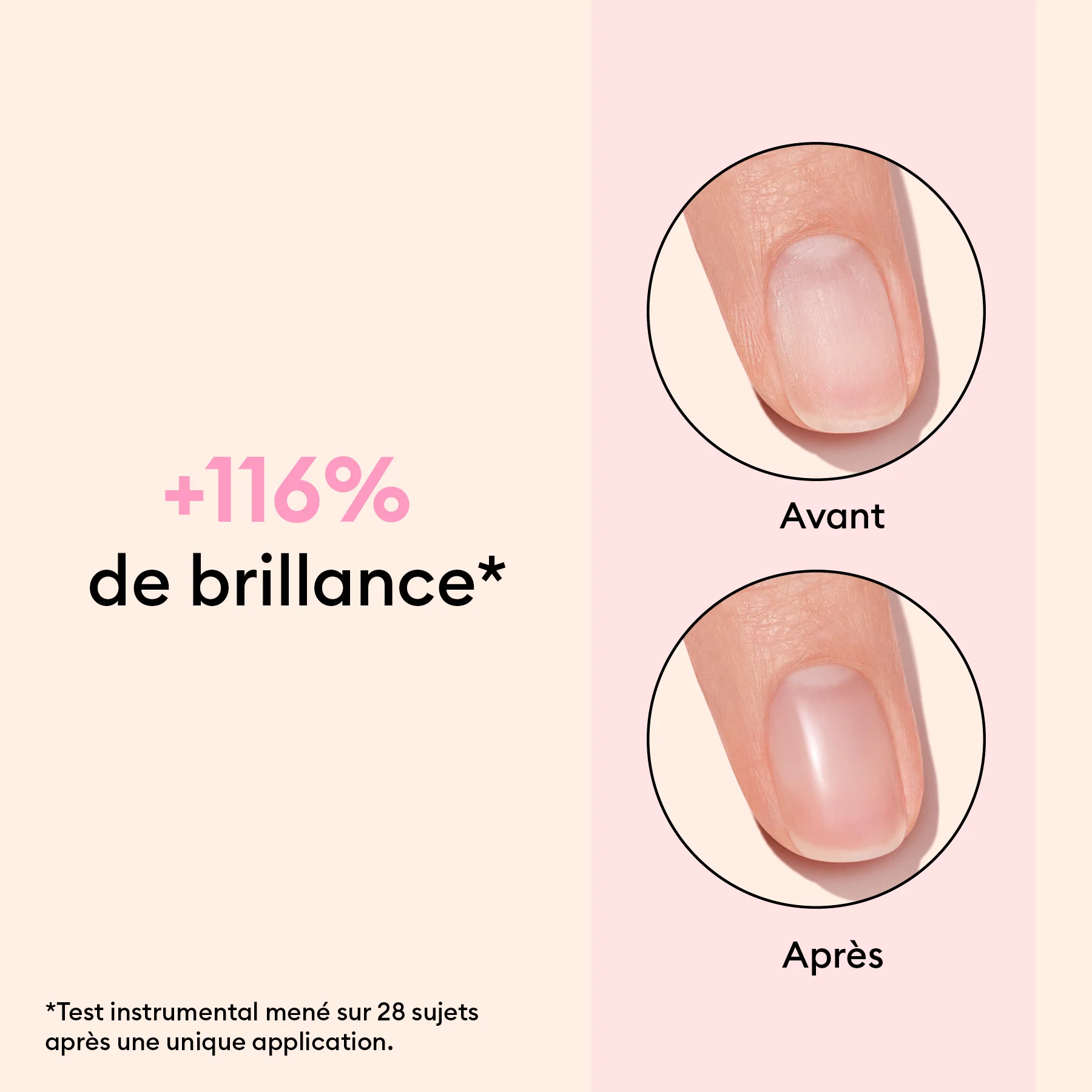 - Face rose vif du Polissoir : lustrez la surface de l’ongle pour refermer les écailles et faire briller.