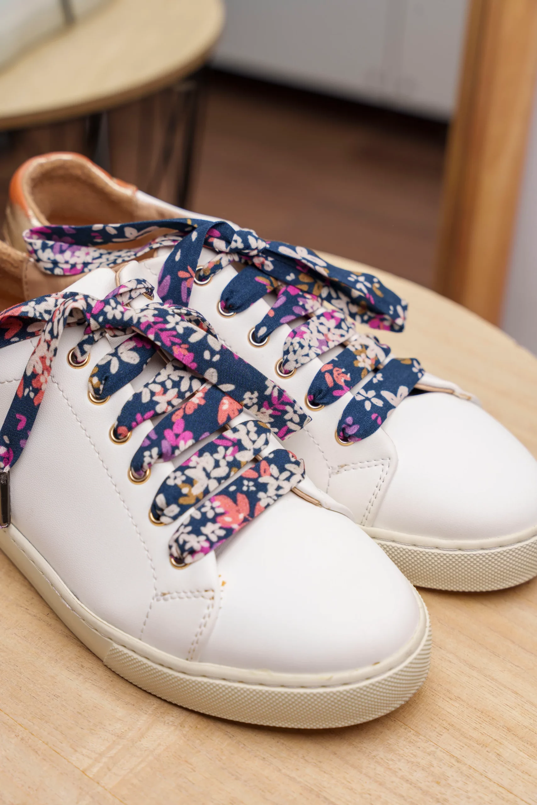 Pimp tes baskets avec ces lacets bleus au motif fleuri rose et blanc !