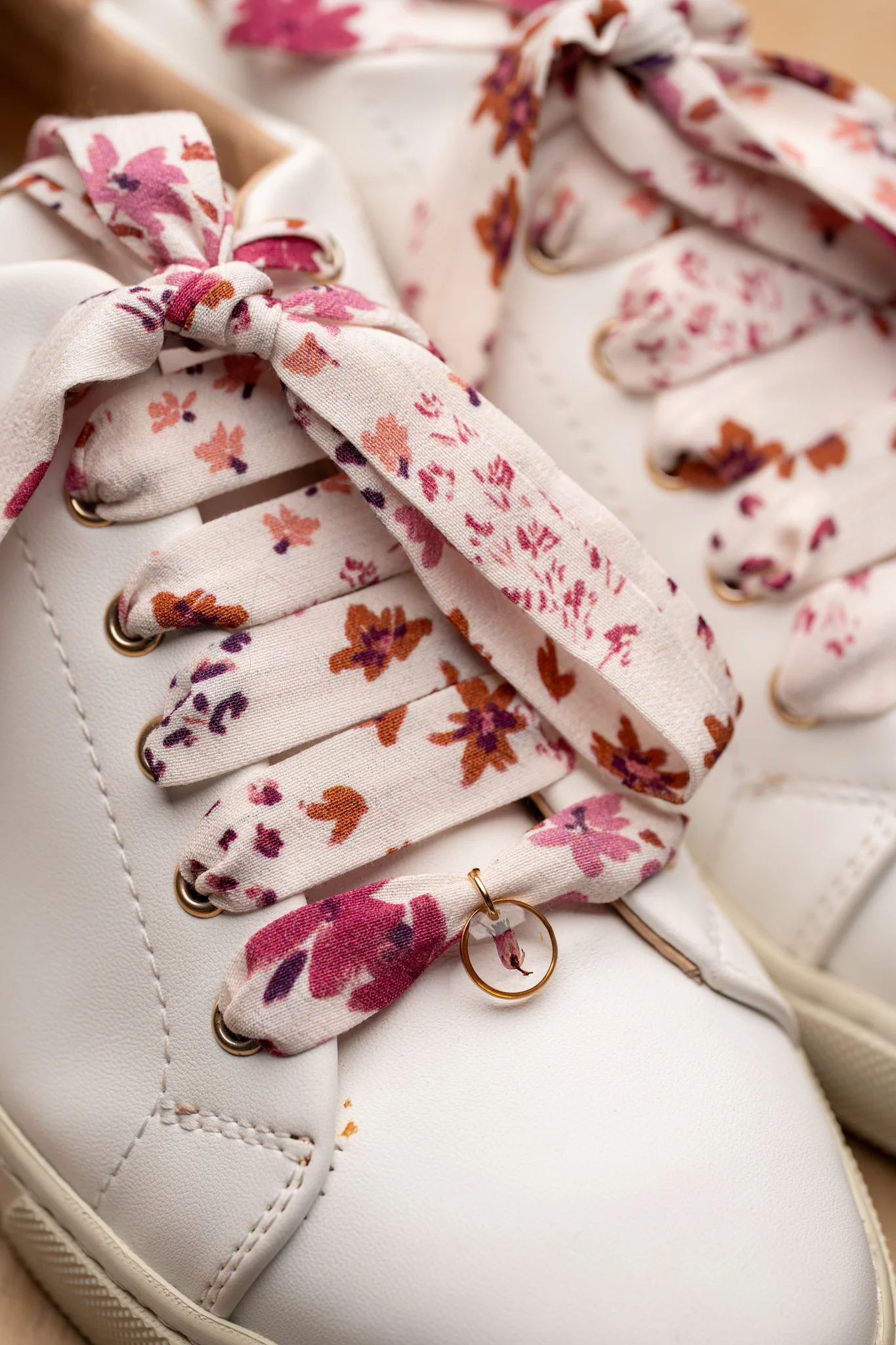 Pimp tes baskets avec ces lacets blancs au motif fleuri rose et marron !