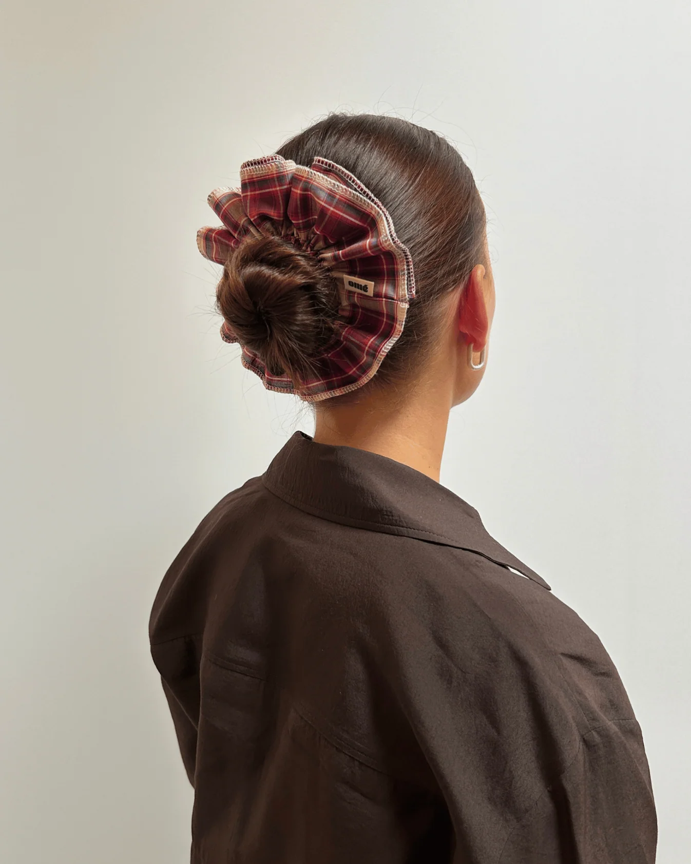 Cet accessoire a été conçu à partir d’un tissu upcyclé d’une maison de haute couture.